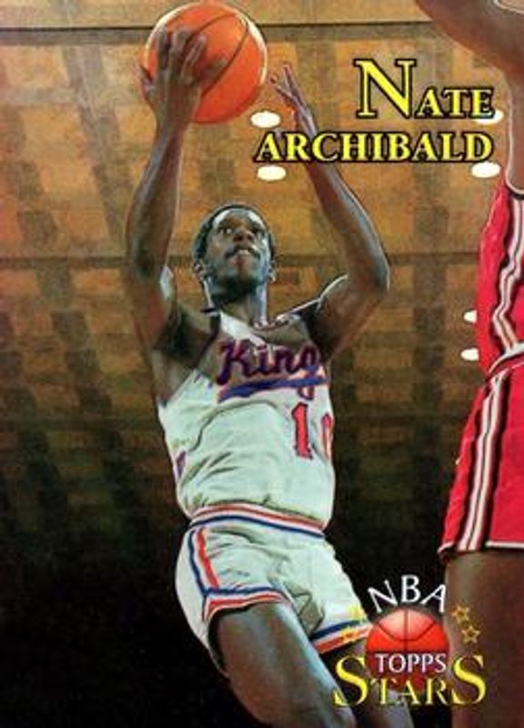 The Nate Archibald 1996 Topps Stars #102 Finest Refractor card is 1 of 20 Nate Archibald's card variations in the 1996 Topps Stars set being tracked by Sports Card Investor, including #2 Base, #102 Base, #52 Base, #102 Finest, and #2 Finest.