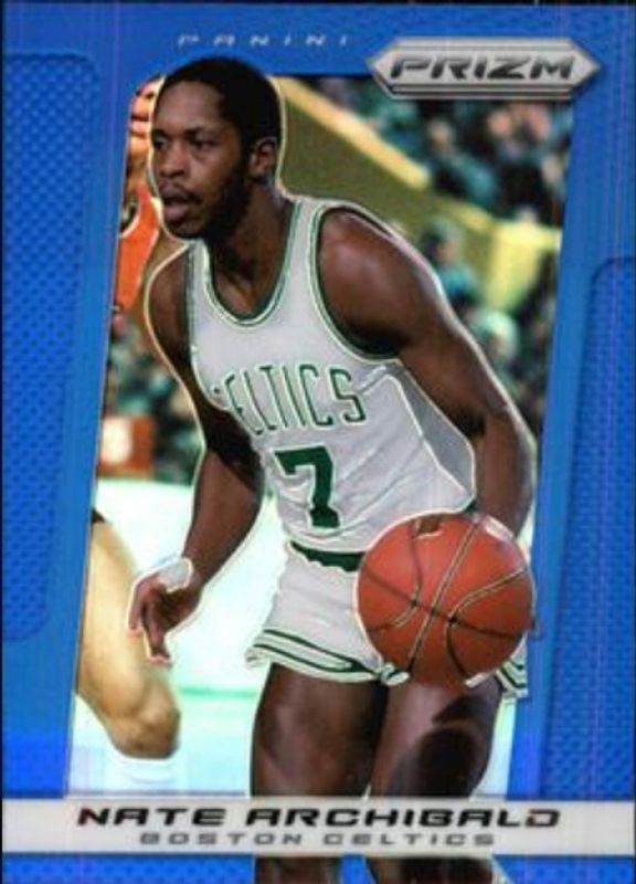 The Nate Archibald 2013 Prizm #235 Blue card is 1 of 19 Nate Archibald's card variations in the 2013 Prizm set being tracked by Sports Card Investor, including Base, Green, Red, Red White Blue Mosaic, and Silver.