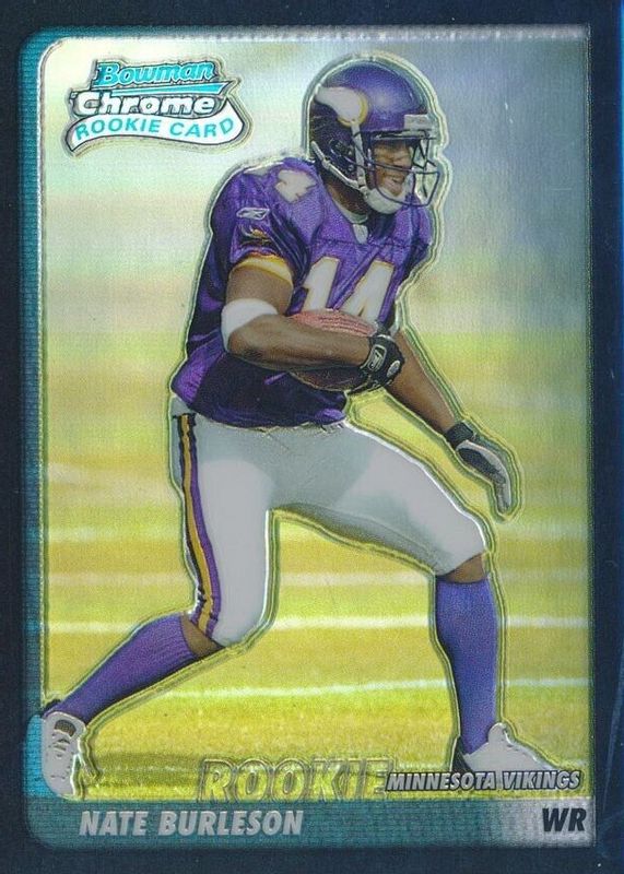 The Nate Burleson 2003 Bowman Chrome #155 Refractor /500 Rookie card in Raw condition has not changed in price in the last 30 days and was last sold for $7.00 .
