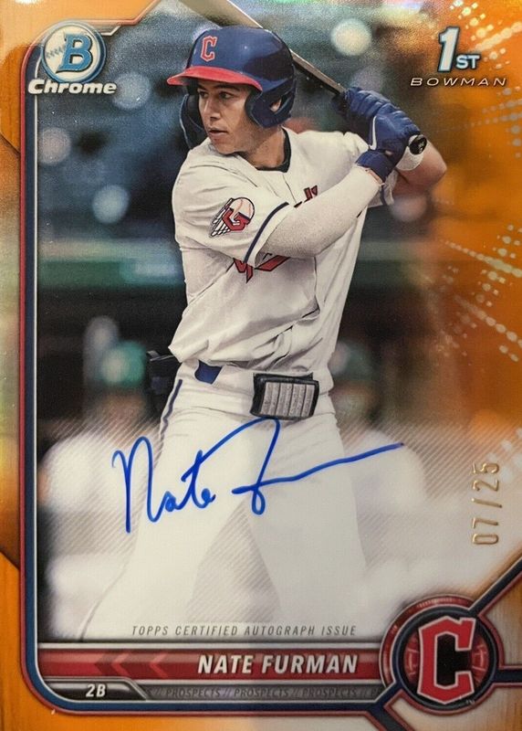 2022 Bowman Draft Chrome Nate Furman Guardians Orange Refractor /25 Auto 1st