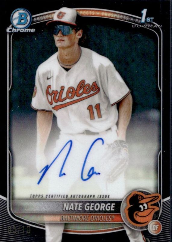 Nate George 2025 Bowman Chrome #CPA-NG Prospect Auto - Black Refractor /10 (1st) RAW Price Guide