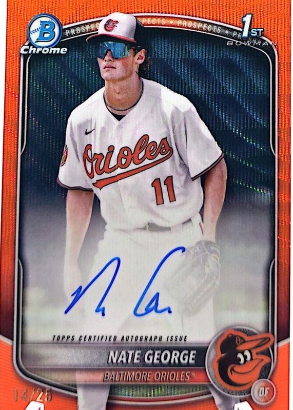 Nate George 2025 Bowman Chrome #CPA-NG Prospect Auto - Orange Wave Refractor /25 (1st) RAW Price Guide