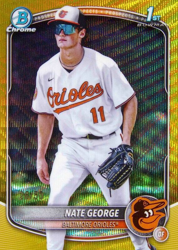 2025 Bowman Chrome Prospects 1st Nate George Gold Wave Refractor /50 Orioles