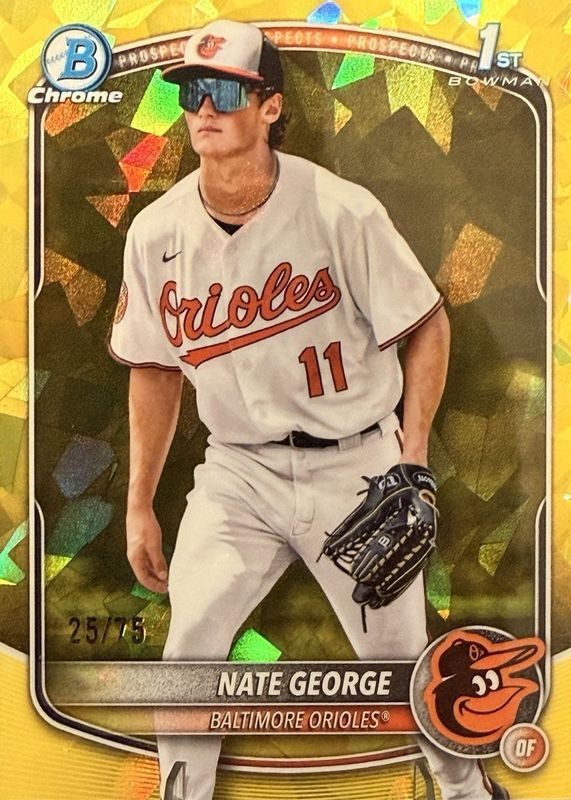 NATE GEORGE 2025 BOWMAN CHROME 1ST SAPPHIRE YELLOW ORIOLES /75 Q5451