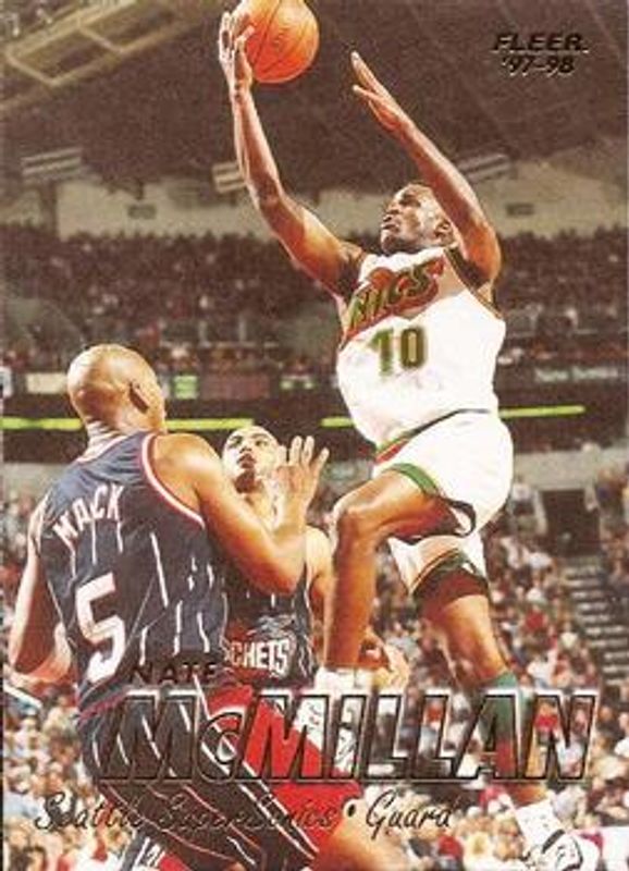 The Nate McMillan 1997 Fleer #171 Base card is 1 of 3 Nate McMillan's card variations in the 1997 Fleer set being tracked by Sports Card Investor, including Crystal, and Tiffany.
