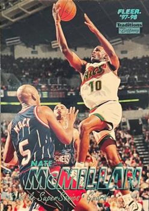 The Nate McMillan 1997 Fleer #171 Tiffany card is 1 of 3 Nate McMillan's card variations in the 1997 Fleer set being tracked by Sports Card Investor, including Base, and Crystal.