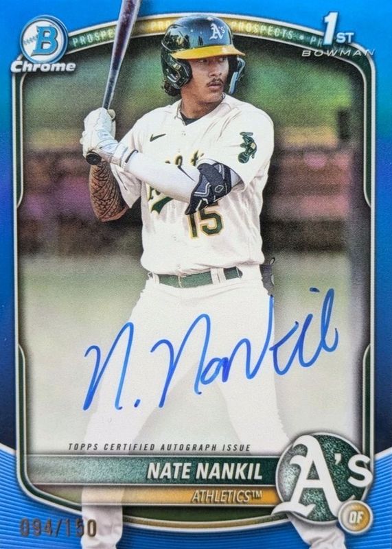 NATE NANKIL 2025 BOWMAN CHROME 1ST TRUE BLUE REFRACTOR AUTO /150 OAKLAND A’s