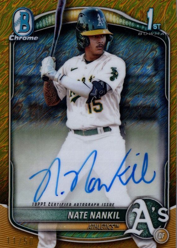 2025 Bowman Chrome CPA-NN Nate Nankil Gold Shimmer Auto/50 Athletics
