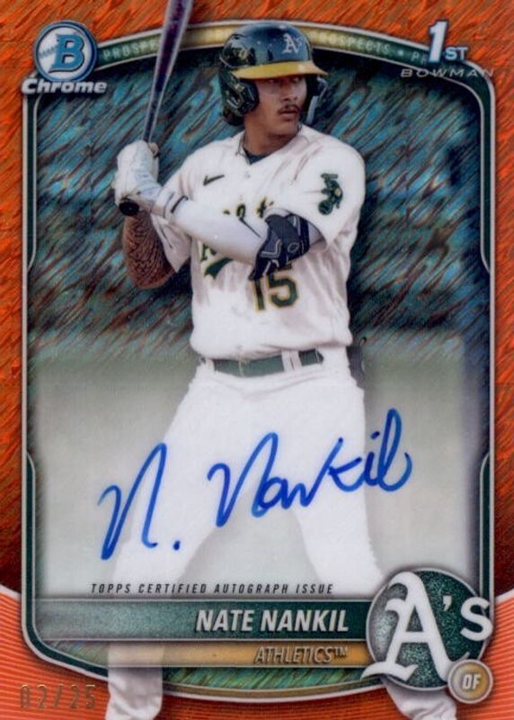Nate Nankil 2025 Bowman #CPA-NN Chrome Prospect Auto - Orange Shimmer Refractor /25 (1st) RAW Price Guide