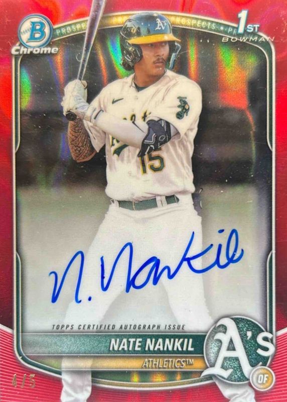 Nate Nankil 2025 Bowman #CPA-NN Chrome Prospect Auto - Red Lava Refractor /5 (1st) RAW Price Guide