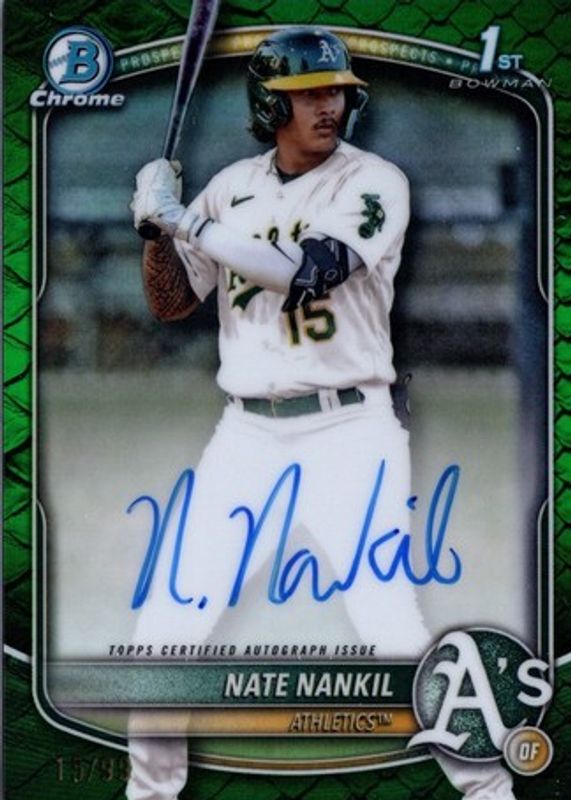 2025 Bowman Chrome Nate Nankil Green Reptilian 1st Auto /99 #CPA-NN ATHLETICS