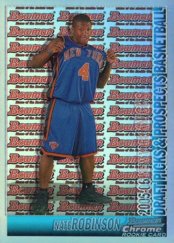 This card is 1 of 7 Nate Robinson's card variations in the 2005 Bowman set being tracked by Sports Card Investor, including Base, Gold, Chrome, Chrome - X-Fractor /150, and Chrome - Gold Refractor /50.