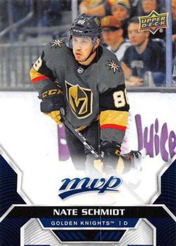 The Nate Schmidt 2020 Upper Deck MVP #88 Blue card is 1 of 12 Nate Schmidt's card variations in the 2020 Upper Deck MVP set being tracked by Sports Card Investor, including Base, Gold Script, Puzzle Backs, Silver Script, and Super Script /25.