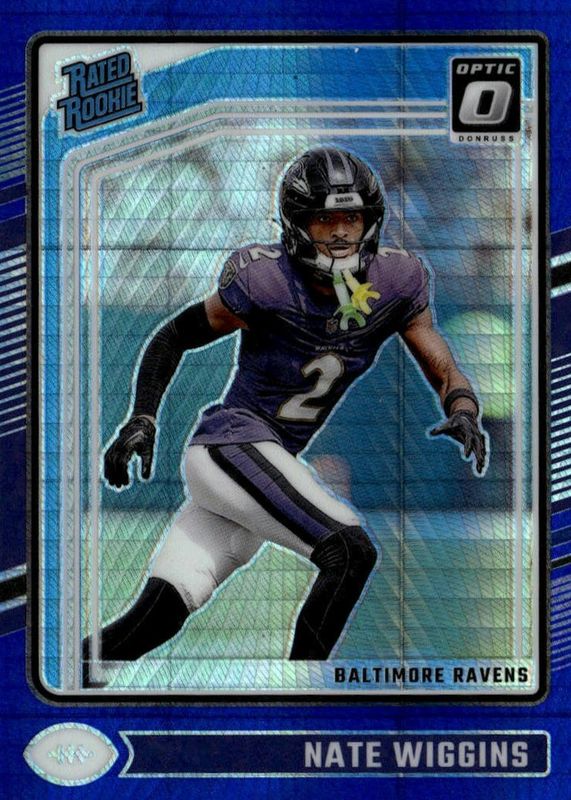 Nate Wiggins # 281 2024 Donruss Optic Rated Rookie Blue Hyper Prizm Ravens