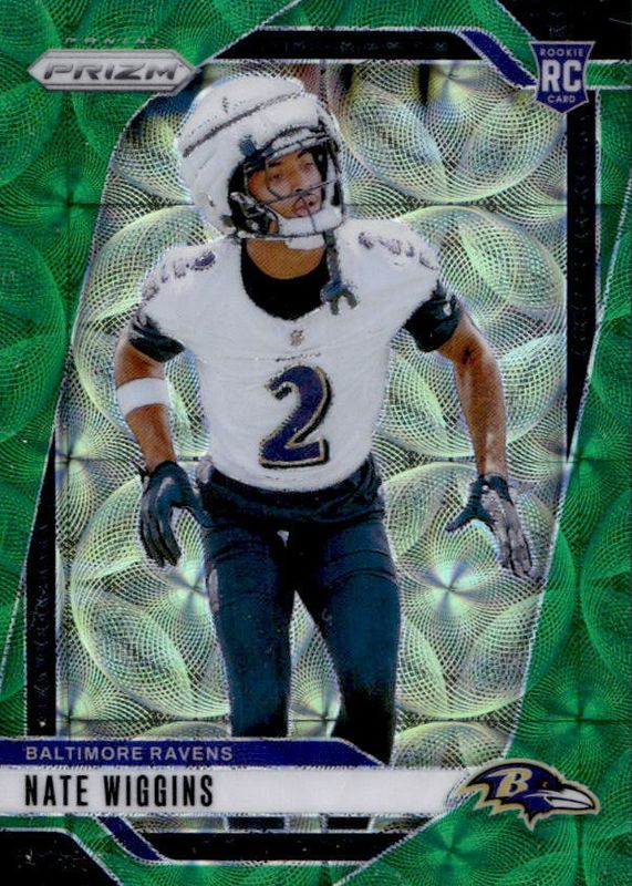 NATE WIGGINS 2024 Panini Prizm GREEN SCOPE PRIZM ROOKIE RC /75 #380 RAVENS 🔥🏈