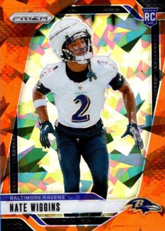 2024 Panini Prizm Nate Wiggins RC Orange Cracked Ice Baltimore Ravens #380