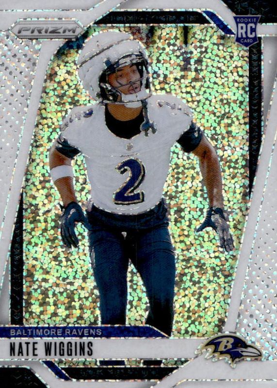 2024 Prizm Nate Wiggins White Sparkle Prizm Rookie RC #380 Baltimore Ravens