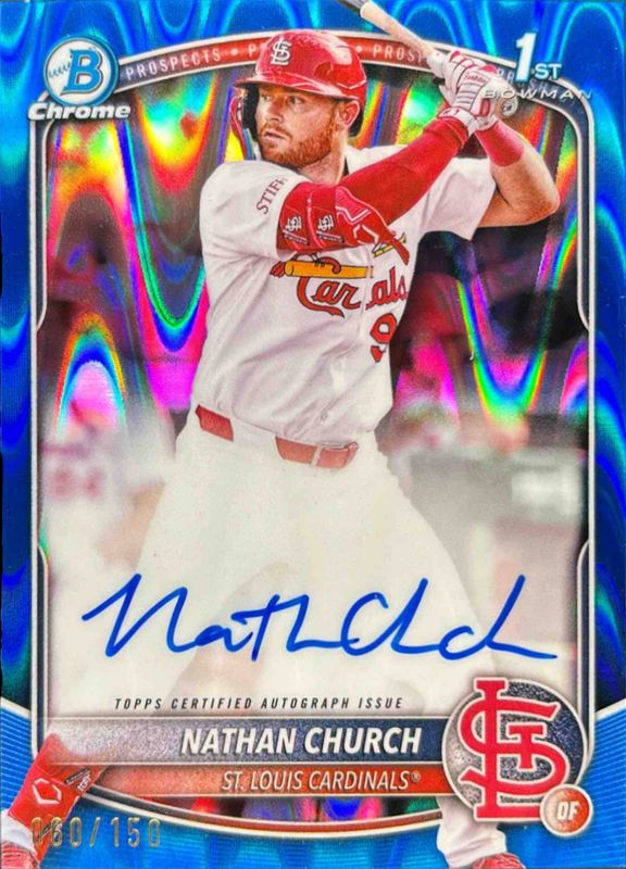 Nathan Church 2025 Bowman Chrome 1st Blue RayWave Auto /150 St. Louis Cardinals