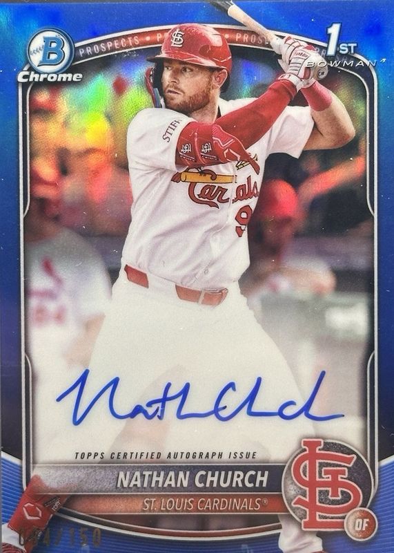 2025 Bowman Chrome Nathan Church 1st AUTO TRUE Blue St. Louis /150 Cardinals