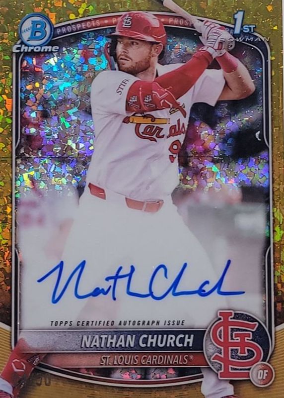 2025 Bowman Chrome Nathan Church Auto Gold Mini Diamonds Refractor 1st #48/50