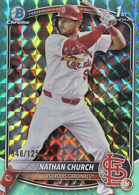 2025 Bowman Chrome NATHAN CHURCH Aqua Geometric 1st Refractor 71/125 - Cardinals