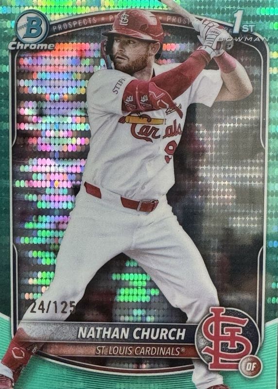 NATHAN CHURCH 2025 BOWMAN CHROME 1ST AQUA PULSAR CARDINALS /125 Q2754