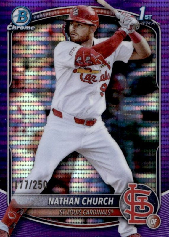 2025 Bowman Chrome Nathan Church Purple Pulsar Refractor 1st #/250 Cardinals