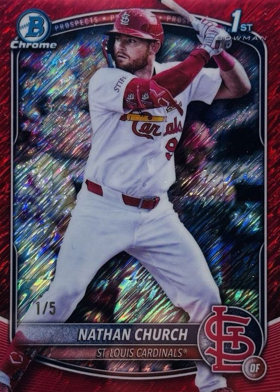 Recent Sales of Nathan Church 2025 Bowman Chrome #BCP-192 Prospects - Red Shimmer Refractor /5 (1st) Raw
