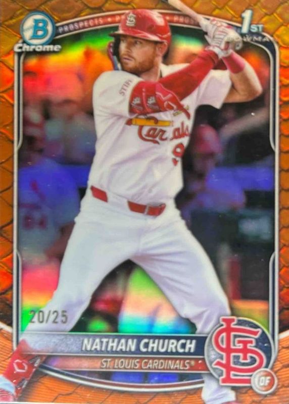 Nathan Church 2025 Bowman Chrome #BCP-192 Prospects - Reptilian Orange Refractor /25 (1st) RAW Price Guide