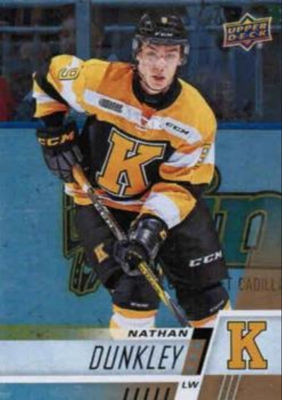 The Nathan Dunkley 2017 Upper Deck CHL #296 Rainbow card is 1 of 7 Nathan Dunkley's card variations in the 2017 Upper Deck CHL set being tracked by Sports Card Investor, including Base, Red Bordered, Printing Plates Black /1, Printing Plates Cyan /1, and Printing Plates Magenta /1.