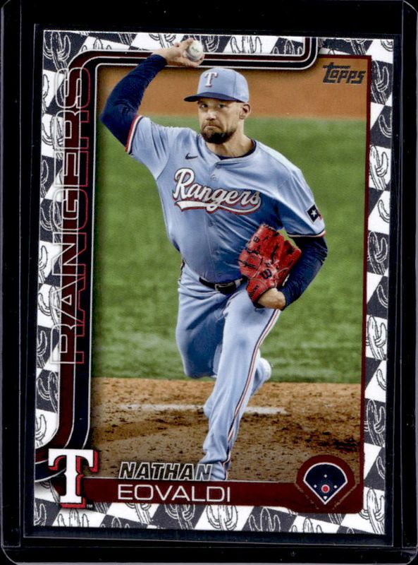 The Nathan Eovaldi 2025 Topps #130 Spring Training card is 1 of 63 Nathan Eovaldi's card variations in the 2025 Topps set being tracked by Sports Card Investor, including Base, Aqua Holo Foil, Diamante Foil, Holo Foil, and Pink Diamante Foil.