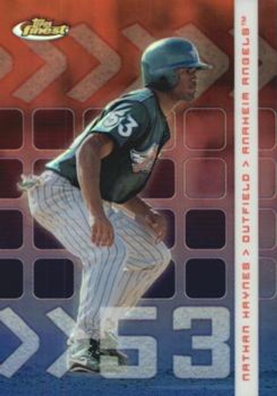 The Nathan Haynes 2002 Topps Finest #99 Refractor /499 card is 1 of 3 Nathan Haynes' card variations in the 2002 Topps Finest set being tracked by Sports Card Investor, including Base, and X-Fractor /299.