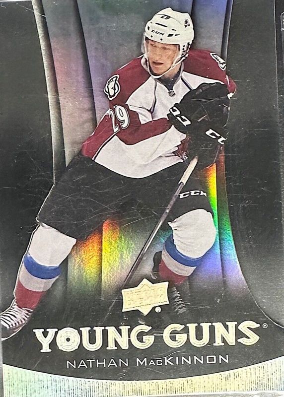 The Nathan MacKinnon 2013 Upper Deck #238 Young Guns - Acetate Rookie card in Raw condition has not changed in price in the last 30 days and was last sold for $1,341.22 .