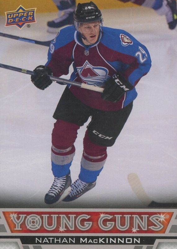 This card is 1 of 22 Nathan MacKinnon's card variations in the 2013 Upper Deck set being tracked by Sports Card Investor, including Young Guns Base, Young Guns Canvas, Young Guns - Acetate, Young Guns - UD Exclusives /100, and Young Guns - UD High Gloss /10.