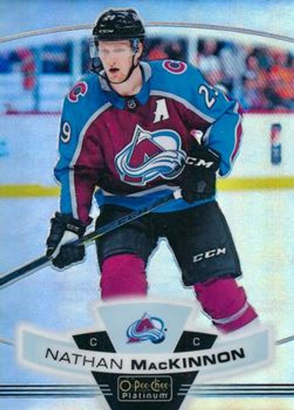 The Nathan MacKinnon 2019 O-Pee-Chee #P-3 O-Pee-Chee Platinum Preview card is 1 of 16 Nathan MacKinnon's card variations in the 2019 O-Pee-Chee set being tracked by Sports Card Investor, including #430b Base, #430 Base, #430 Blue Border, #430 Gold Border, and #430 Red Border.