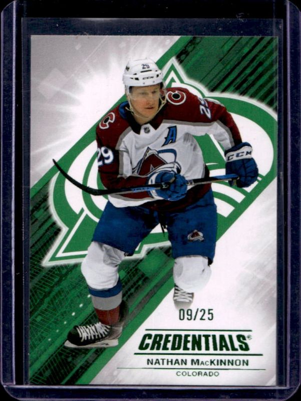 Nathan MacKinnon 2024 Upper Deck Credentials #29 Green /25 BVG 2 Price Guide