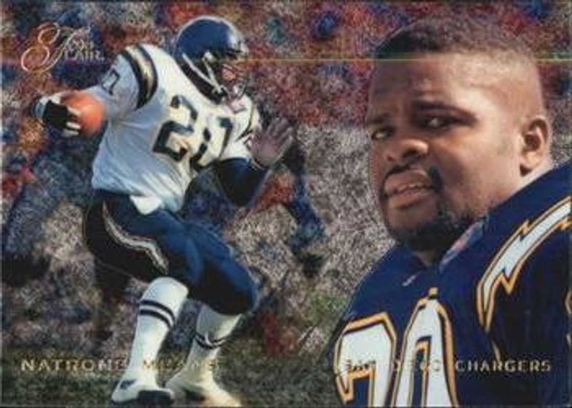 The Natrone Means 1995 Flair #182 Base card is 1 of 2 Natrone Means' card variations in the 1995 Flair set being tracked by Sports Card Investor, including TD Power.