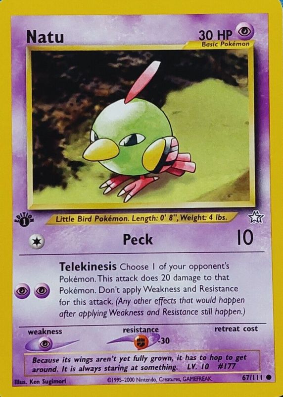 NM/Mint 1st Edition Natu 67/111 Neo Genesis Pokemon Card WOTC