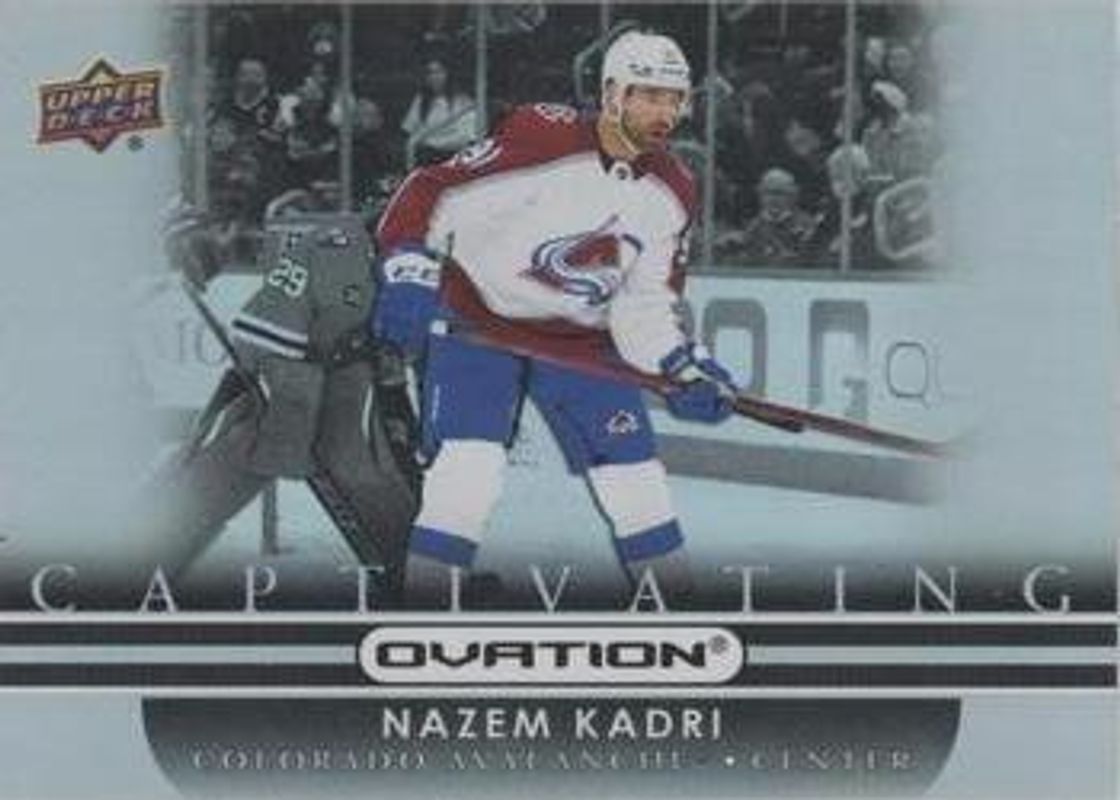 The Nazem Kadri 2021 Upper Deck Ovation #C-21 Captivating card is 1 of 19 Nazem Kadri's card variations in the 2021 Upper Deck Ovation set being tracked by Sports Card Investor, including Base, Checkerboard, Gold Circular Wonder, Gold Foil, and Silver Foil.