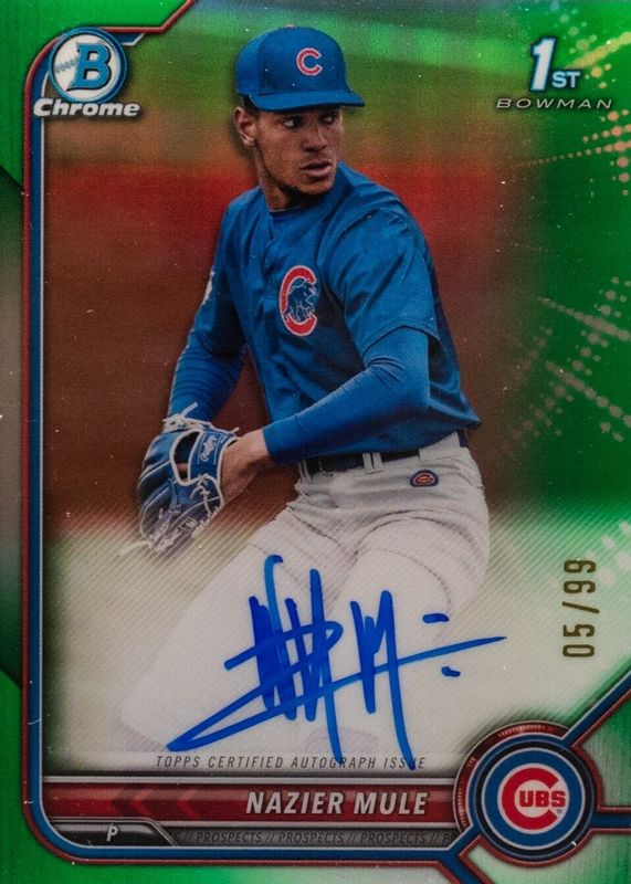 2022 Bowman Chrome Draft Nazier Mule Prospect Green Refractor Auto #92/99 Cubs