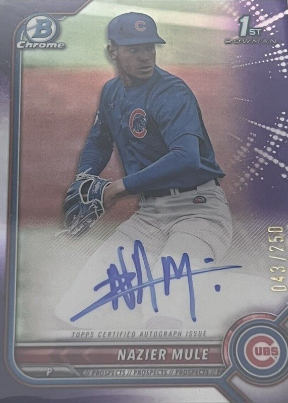 Nazier Mule 2022 1st Bowman Chrome Purple Refractor Auto /250 RC Cubs
