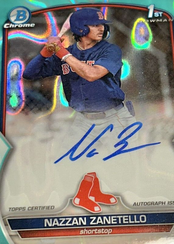 2023 BOWMAN DRAFT CHROME NAZZAN ZANETELLO AUTO AQUA LAVA REFRACTOR /199 1ST BOW
