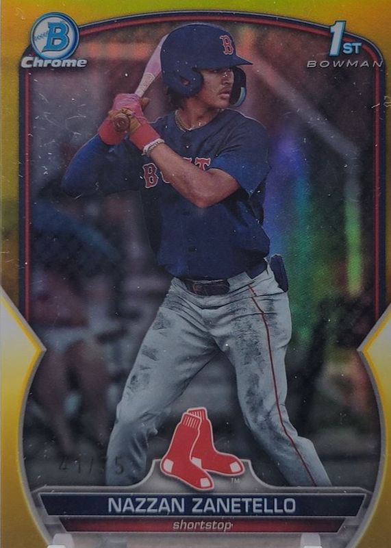 2023 BOWMAN DRAFT CHROME NAZZAN ZANETELLO 1ST YELLOW REFRACTOR 14/75 RED SOX