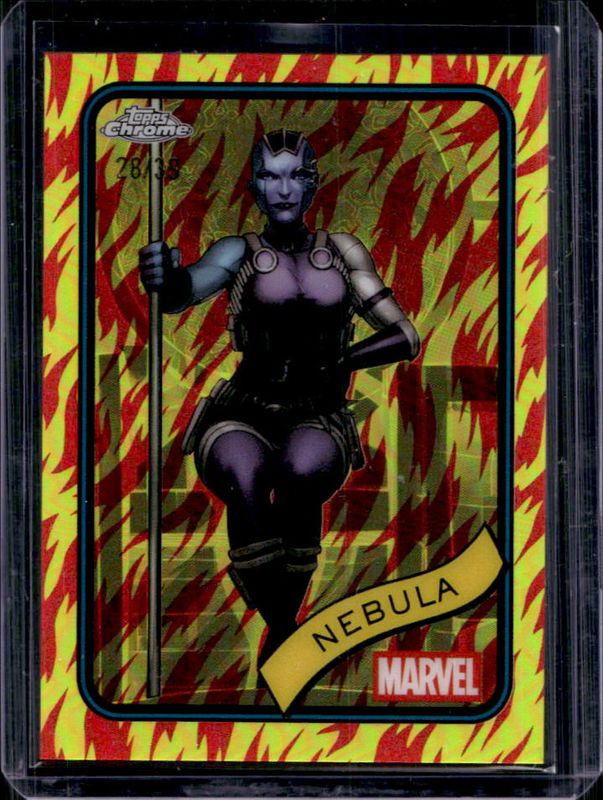 The Nebula 2025 Topps Chrome #167 Human Torch Refractor /39 card is 1 of 29 Nebula's card variations in the 2025 Topps Chrome set being tracked by Sports Card Investor, including Base, Refractor, Yellow Lava Refractor, Spider Web Refractor /399, and Blue Refractor /299.