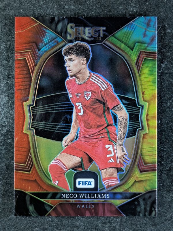 The Neco Williams 2022 Select FIFA #74 Tie-Dye /49 card is 1 of 19 Neco Williams' card variations in the 2022 Select FIFA set being tracked by Sports Card Investor, including Base, Blue, Checkerboard, Multi Color, and Peacock.