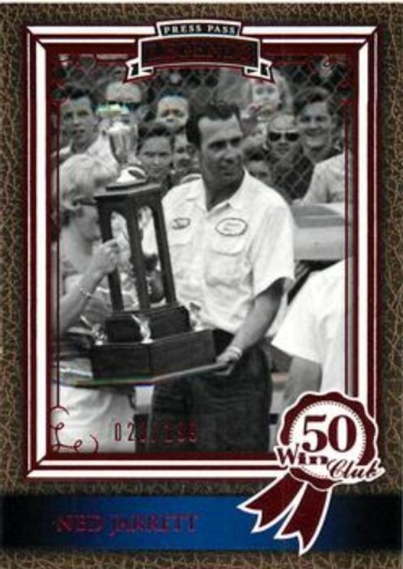 The Ned Jarrett 2010 Press Pass Legends #71 Red /199 card is 1 of 45 Ned Jarrett's card variations in the 2010 Press Pass Legends set being tracked by Sports Card Investor, including #19 Base, #80 Base, #71 Base, #80 Gold /399, and #19 Gold /399.