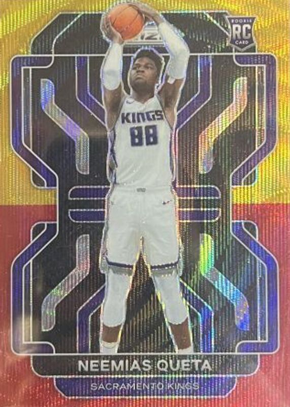 The Neemias Queta 2021 Prizm #316 Red & Gold Wave Rookie card in Raw condition has not changed in price in the last 30 days and was last sold for $13.00 .