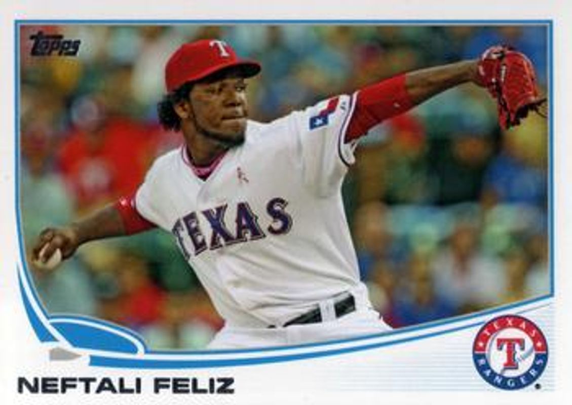 The Neftali Feliz 2013 Topps #30 Base card is 1 of 20 Neftali Feliz's card variations in the 2013 Topps set being tracked by Sports Card Investor, including Chasing The Dream Relics, Silk Collection /50, Blue, Emerald Foil, and Purple.