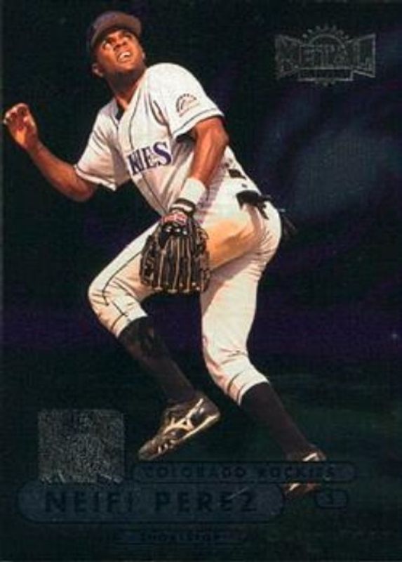 The Neifi Perez 1998 Metal Universe #153 Base card is 1 of 2 Neifi Perez's card variations in the 1998 Metal Universe set being tracked by Sports Card Investor, including Precious Metal Gems /50.