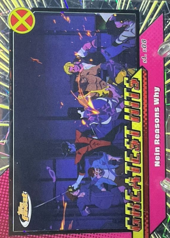 2025 Topps Finest X-Men '97 Nein Reasons Why Greatest Hits Laser Refractor #/199